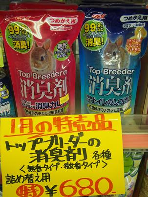 小動物用消臭剤 詰め替え用 特価!! ¥680!! 左が「無香タイプ」で右が「フレッシュシトラスの香り」です。
