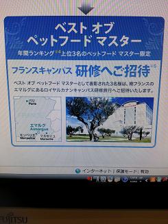 ベストオブマスターになると、フランスに連れて行って貰えるそうで、美人上司からも「頑張ってフランス行って来いよ!」と言って貰いましたが・・・私自身はフランス云々というより、このペット業界内に「東葛ペット」という名前を轟かせたい!!全国3位に入って目立つことで、全国のショップで働く人達に「何だ?この東葛ペットっていう会社は!?」とビックリさせたい!!その一心で頑張りました。