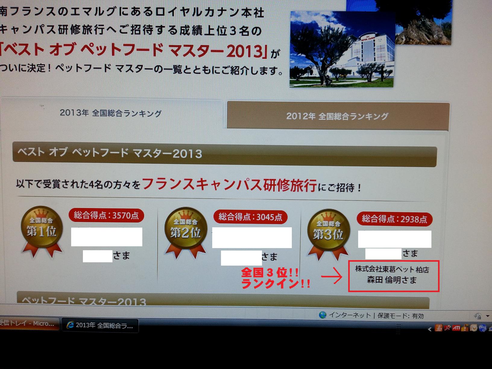 多くのお客様が、この柏店でロイヤルカナンのフードをお買い上げして下さっているから、3位以内に入ることが出来たのです!