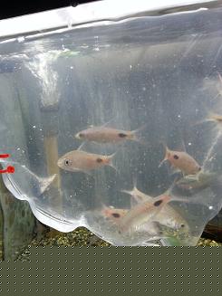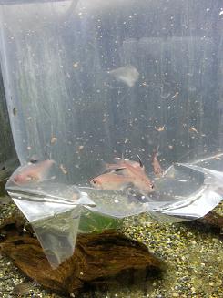 ちょっと雑な画像なので分かりにくいですが、ピンク色のやや大きめのテトラで、銀色もチラチラ入っており、背びれがシュッと長くてカッコ良く、素敵なお魚です。『ダイヤモンド・ペレズテトラ』!!