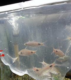 まだ到着したばかりなので、どうってことないお魚に見えますが、これで色が出てくると結構キレイなんです!!『プンティウス・フィラメントーサ』!!