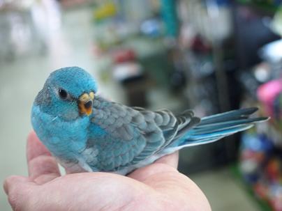 まだヒナなんですよ!こんなキレイな手乗りインコ!素敵ですよねー