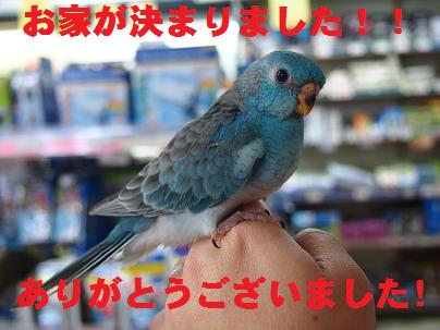 先日紹介させて頂いたばかりの『美声インコ(ブルー)』ちゃんのお家が、早くも決まりましたー!!