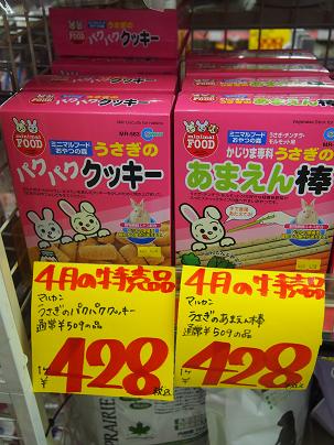 うさぎのおやつ「パクパククッキー」と「あまえん棒」どちらも特価!!¥428!!