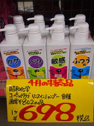 その時も書きましたが、あまり安過ぎるリンスインシャンプーはなかなか泡立たず、結局いっぱい使うことになるので、せめてこれくらいのランクのものをおすすめします。 特価!! ¥698!!