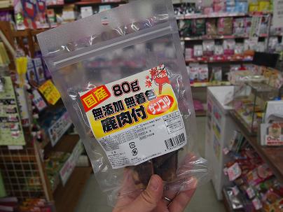 !?と驚かれた方もおられるかもしれませんが、いえいえ、入荷したのは生きてる鹿ではなく、哀れ…と言いますか、ワンちゃんのおやつになっちゃった鹿さんでございます