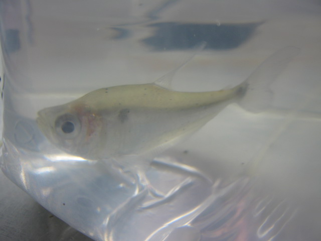 パンタナルからやってきたカラシン、「ロエボイデス・パラネンシス」。これもでかいです。5~6cmあります。スプーンヘッドのようなおでこのエグレがう~ん!ワイルド!!