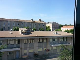 お部屋の窓の外を覗くと隣にこんな建物があります。これ、高校なんです。