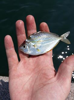 おし!キタ!とまず釣り上げたのは『ヒイラギ』というお魚。食べたら美味しいのですが、ヌメリが多く小骨も多いので、これはいらないやと逃がしてあげました。