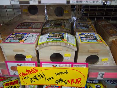 オススメのハムちゃんハウス『広葉樹ハウス』!! やっぱり床材もハウスもホントは広葉樹の方が優しいから良いんですよね。 各種 特価!! ¥798!!