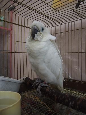 どどど、どうしてそんなことに!?と驚き、T主任に聞いてみたところ『凄腕常務』の一声でモモちゃんは本社へ戻し、代わりにこのキバタンちゃんが来ることになったとのこと。