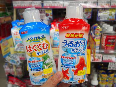 左側はメダカ専用カルキ抜き!こちらを使うとなんと産卵率がグーーーンとアップします!!