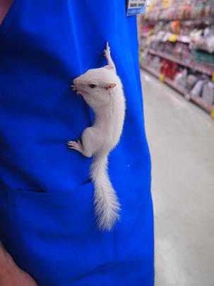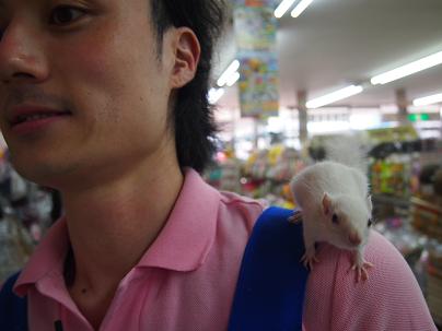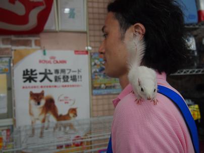 リード無しでも絶対どっかへ行ってしまわない、とっても良く馴れたホワイトシマリスさんは男の子です。