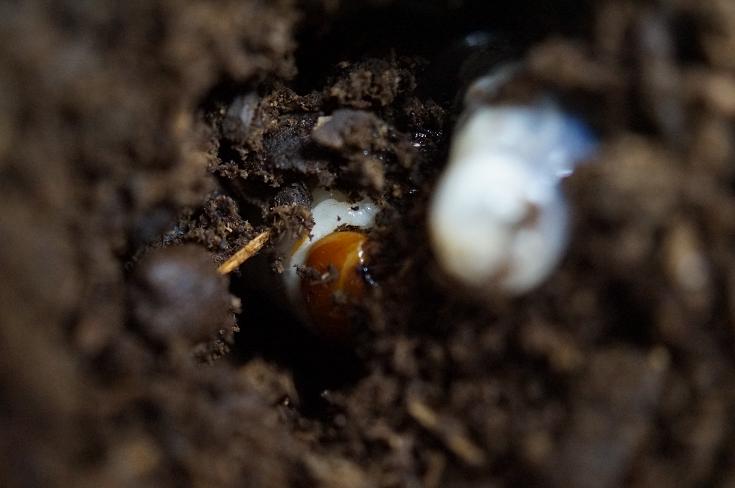 何とビックリ!目が白いカブトムシの幼虫だびょん。
