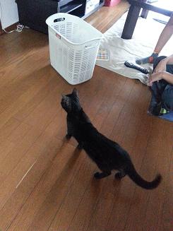 我が家の愛娘『しじみちゃん』。洗濯カゴを気にしております。どうしたんでしょう?