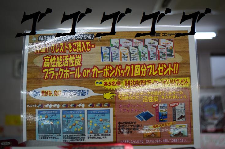 只今、ひかりクレストシリーズをお買い上げの方でメルマガ会員に「なっている」方、もしくは「その場でご登録」していただいた方に「超高性能活性炭・ブラックホール60cm水槽用 1回分」か、「高性能活性炭・カーボンパック90cm水槽用 1回分」 を先着各5名様分づつ、プレゼントさせて頂いております。