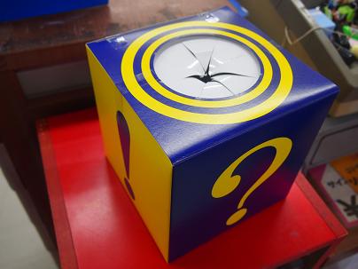 そしてこちらがその『くじ引きBOX』!! 「!」や「?」のデザインがドキドキ感を倍増させます。(笑)