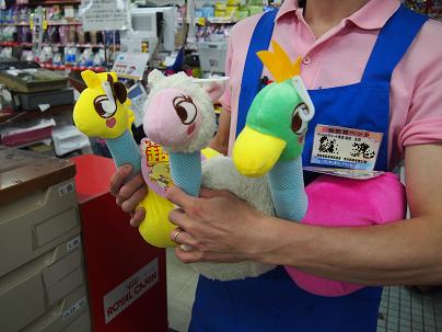 お顔の部分は押すと「ピュ!」と鳴り、胴体の部分は振り回されるとカラカラと音がします。