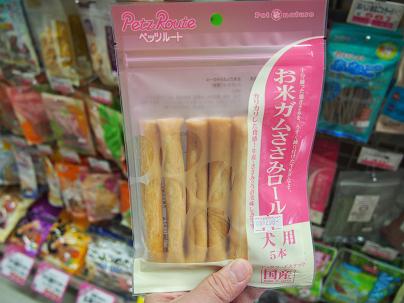 『お米ガムささみロール』!お米を使ってほどよい固さ♪ こだわりのカリカリ仕上げですので、噛む力が弱い超小型犬やシニア犬にも安心なガムです。