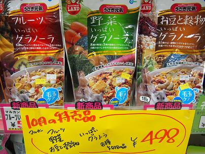 新商品!と言っても、実際はもう発売からしばらく経つ小動物用副食ですが、めっちゃ食いつきが良く、めっちゃ喜んで食べる!ということが、やっと最近になって皆様に知れ渡ってきたようで、とても販売数が伸びてきているこのグラノーラ各種! 今月は特価!! ¥498!!