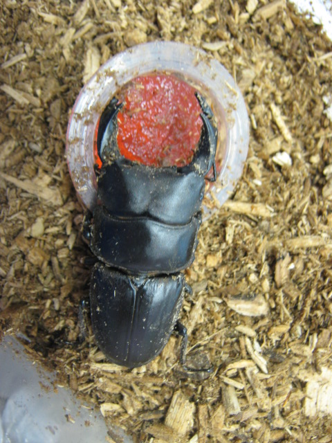 その、と~っても強いと思われるオオクワガタ。限定1匹¥3,000でお売りいたします!!オオクワガタは冬眠しながら数年生きるので、まだまだ楽しめます!個人的には「受験のお守り」にいいのでは?なんて思ったりしております。(落ちないから)