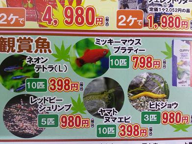お魚コーナーの特売生体は、どれもかなりの激特価!!