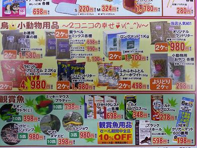 鳥・小動物 コーナーやお魚コーナーの特売品もか~なりミリョク的!!