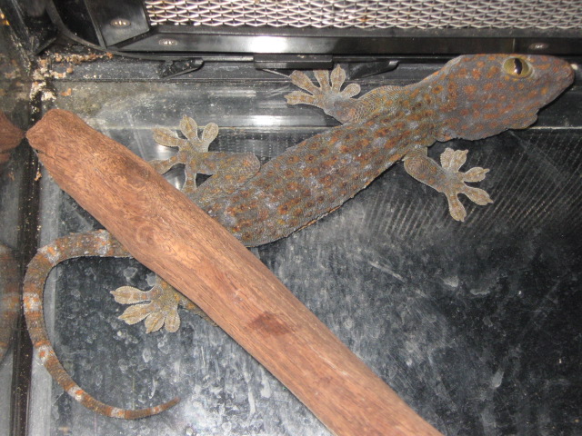 次は「トッケイヤモリ」。東南アジアに棲むヤモリです。ヤモリの中では大きい方で色も結構きれいだし、割とお安いんです。「トッケイ!トッケイ!」と鳴くからこの名前がついたのですが、飼育下で「トッケイ!」という鳴き声を聞けることはまずありません。