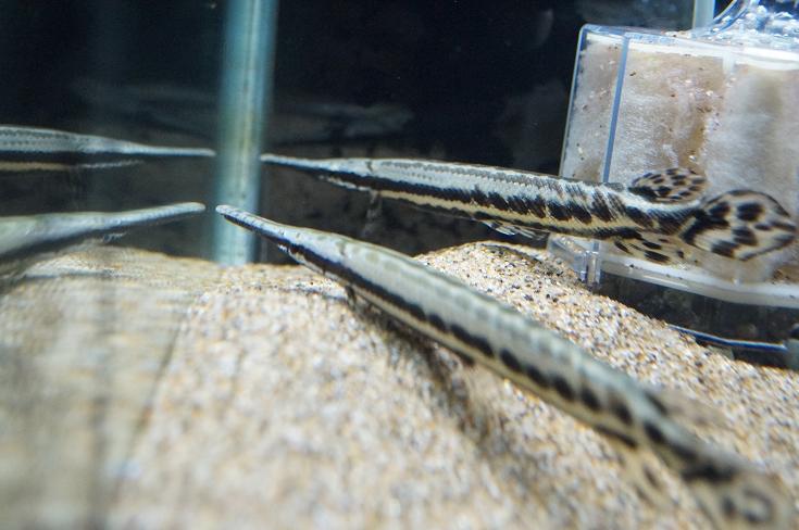 このお魚を見るお客さんが良く「すげ~!アリゲーターガーが売ってるぜ!」とか「どう〇つの森で釣った事あるよ!」って聞くんですが・・・・アリゲーターガーとは別物ですよ。