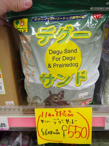 そこで、次の特売品はこちら! 『デグーサンド』!! デグーやジリスさん達などの砂浴び用のお砂です。