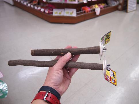 こちらは天然木の止まり木。長いのと短いのがあります。
