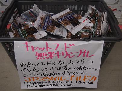 またまた、ご来店サービスとして、通路にキャットフードの無料サンプルを置いておりまーす!