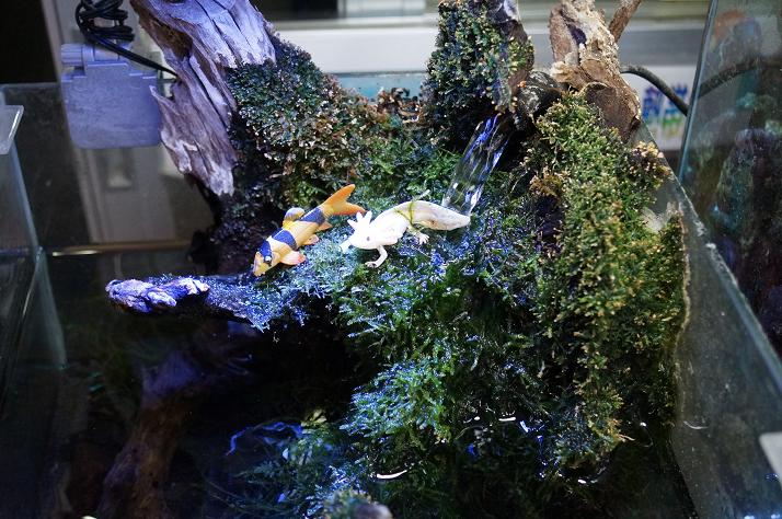 見え難いですが、ウーパールーパーやクラウンローチが居ますんよ。