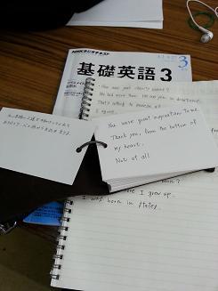 調子に乗って、またまたプライベートなこと載せちゃいますが、自分の手にズラズラ英文をいっぱい書いて、それを暗記という感じで英語のお勉強をしておりましたが、段々英文の数が多くなってくると、手の甲にビッシリになっちゃって、何だかタトゥーのようにも見えちゃってキモチ悪いし、そもそもお勉強とは言え、仕事とは関係無いことを書いている訳なので、それはちょっとヤメにして、もうちょっとカッコイイやり方に変えました。
