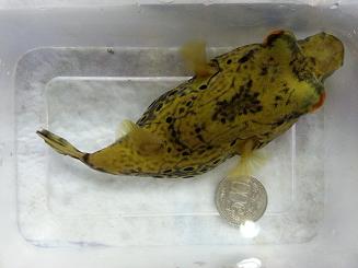 こんなでっかい(500円玉と比較してみて!)フグ!しかも塩分ゼロの純淡水で飼える熱帯フグ!!