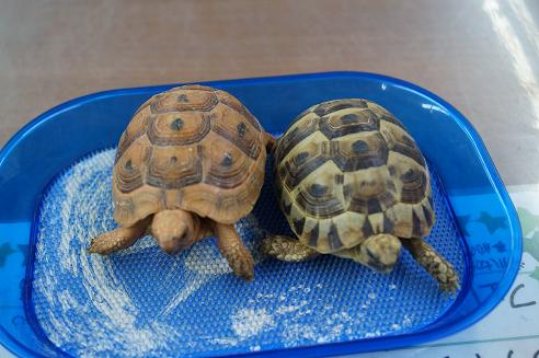 左が今回入荷してきた、ギリシャリクガメ四号。