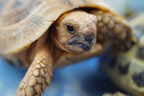 右が前からいる普通のギリシャリクガメ一号。(ちなみに二号、三号もいるよ。)