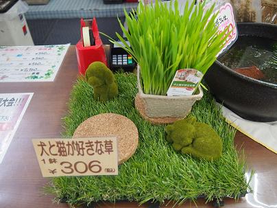 レジのところにこんな風にしてネコ草を置いてみましたら、非常にご好評頂いております