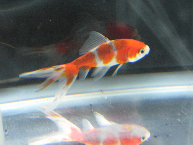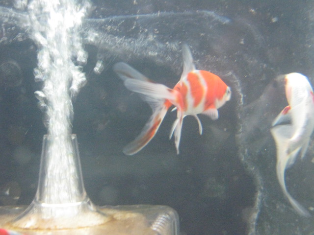 ・・・と二人で大はしゃぎ!! 4ツ尾になっている朱文金です!