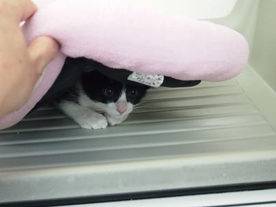 何しろ今日来たばかりのネコちゃんですから、まだとってもビビってしまっております。