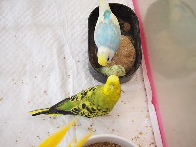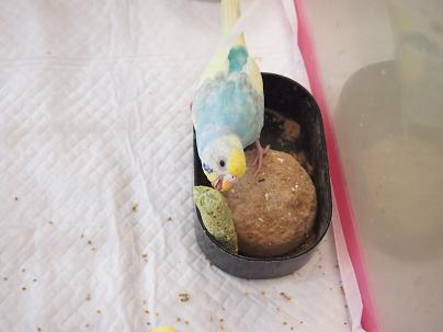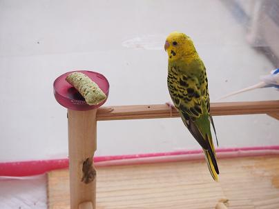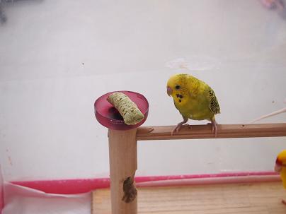 おっ!早くもレインボーのセキセイちゃんがかじり付きに来ましたね!
