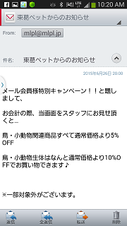 そうです!昨晩は鳥・小動物コーナーからもメールが配信されてます!!