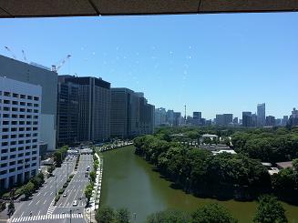 でっかいワイドビューの窓から見える景色はババーン!っと皇居!!