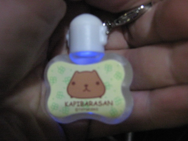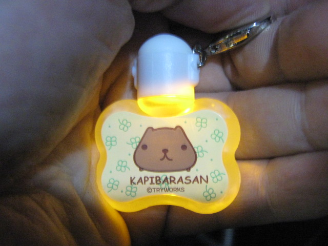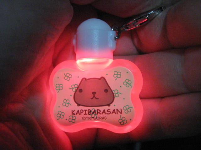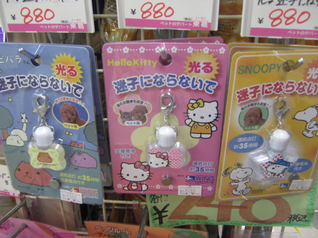 ボタン電池が入っていて、スイッチを押すと夜ピカピカ灯りが点滅する「光る迷子札」です。
