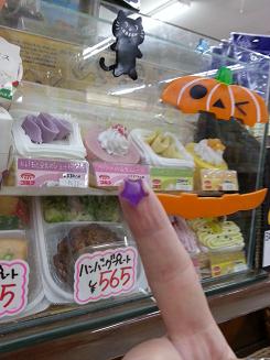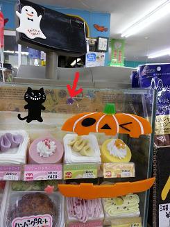 かぼちゃ入りケーキのとこにはこんな風にでっかいかぼちゃさんを貼り付けたり…。主任らしいセンスです