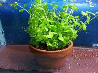この水槽ですね!こんな風に芝生のようになるので人気の水草です。