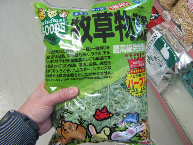 牧草を敷いてあげてもいいです。牧草だと、口に一杯牧草をくわえて、一箇所に集めてお家を作ったりします。木製やプラ製のハウスを用意してあげても、かじってまたたく間にボロボロにしてしまいます。