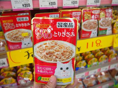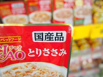 特にササミなんかはね、味が全然違う!!国産の方が格段にウマイ!!ということは、ネコちゃんの食いつきもチガウ!! だーから売れてるんですよ、チャオブランドの商品は。