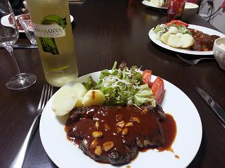 私が腕を振るって、ステーキを4人分焼きました