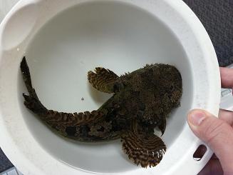 鳴くお魚って結構他にもいて、鳴くこと自体はそんなに珍しいことではないのですが、他の鳴く魚は、例えば釣り上げた時なんかに「キュッ!キュッ!」とか「ゴッ!ゴッ!」っというような、どちらかというと機械的な感じの鳴き方をすることが多いのですが、このライオンフィッシュはかなり感情のこもった、本当に怖がっている鳴き方なので、「もう、絶対泣かさないぞ!!」と心に誓い、メガネ君には、こいつを大切に管理してやるように申し伝えました。
